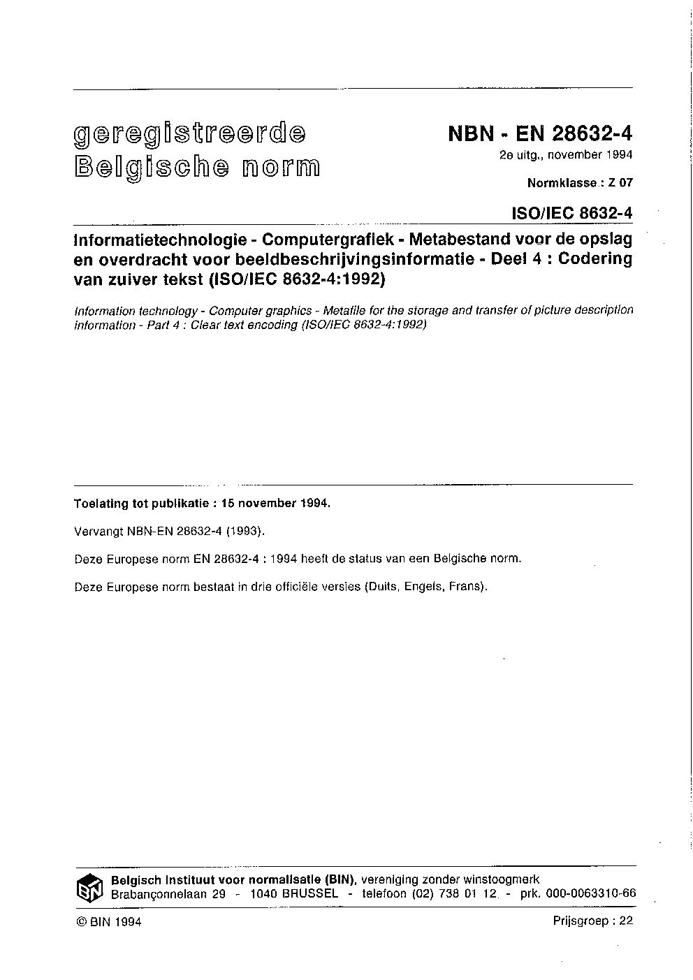 | Publisher | Bureau de Normalisation Belge (NBN) |