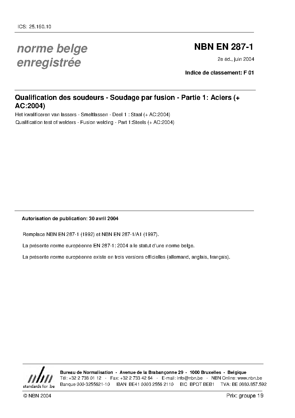 | Publisher | Bureau de Normalisation Belge (NBN) |