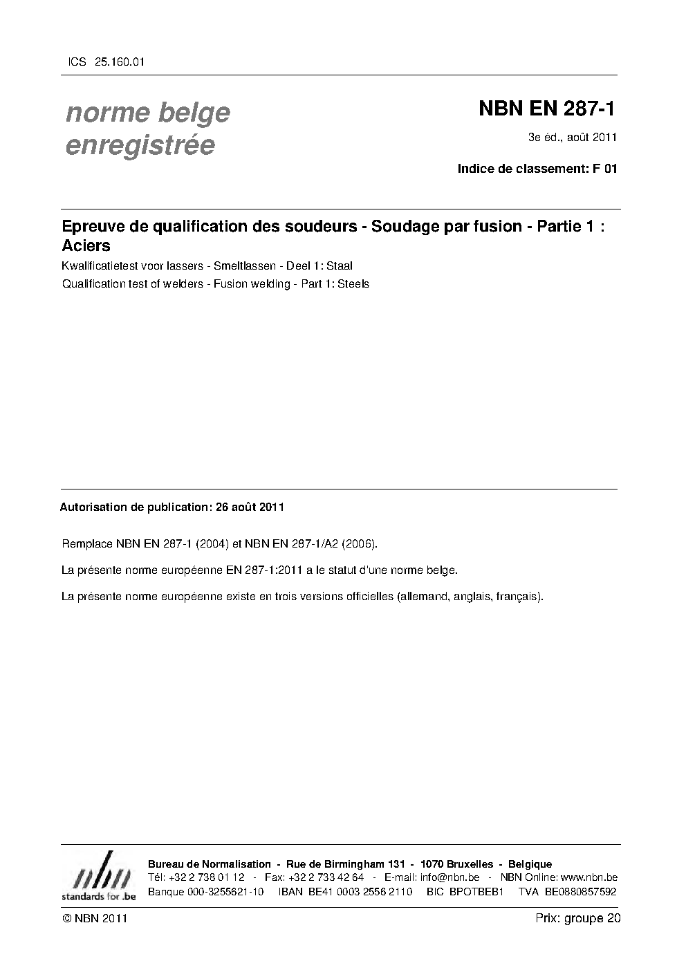 NBN EN 287-1:2011