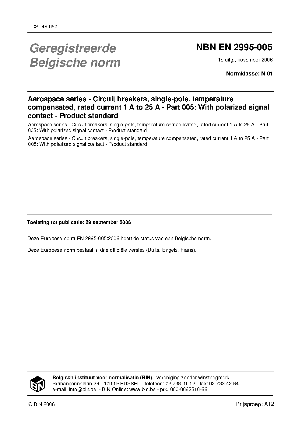 | Publisher | Bureau de Normalisation Belge (NBN) |