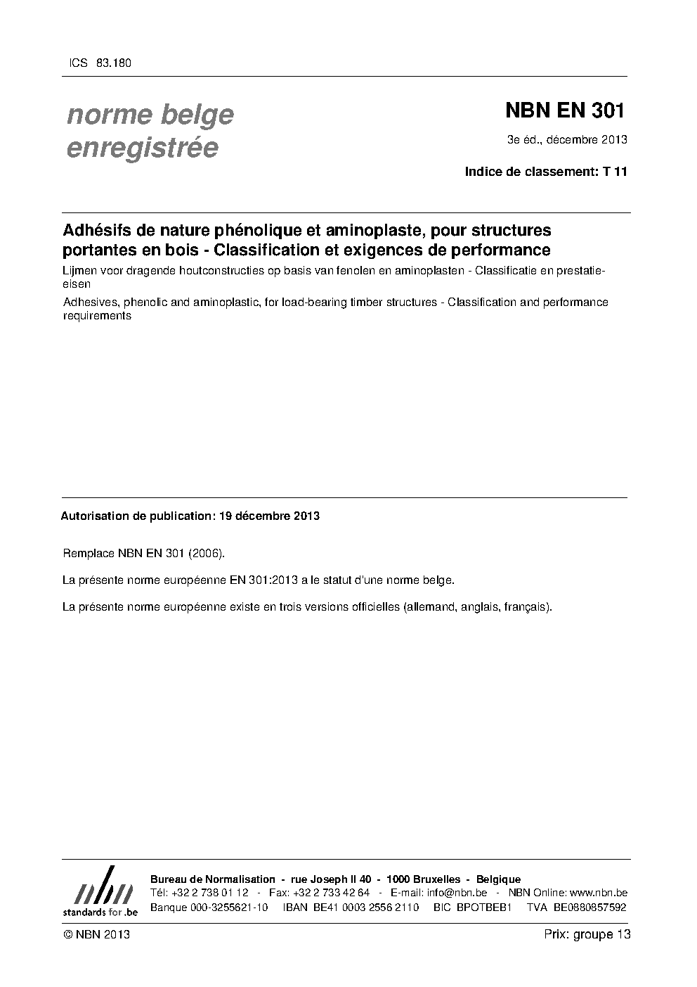| Publisher | Bureau de Normalisation Belge (NBN) |
