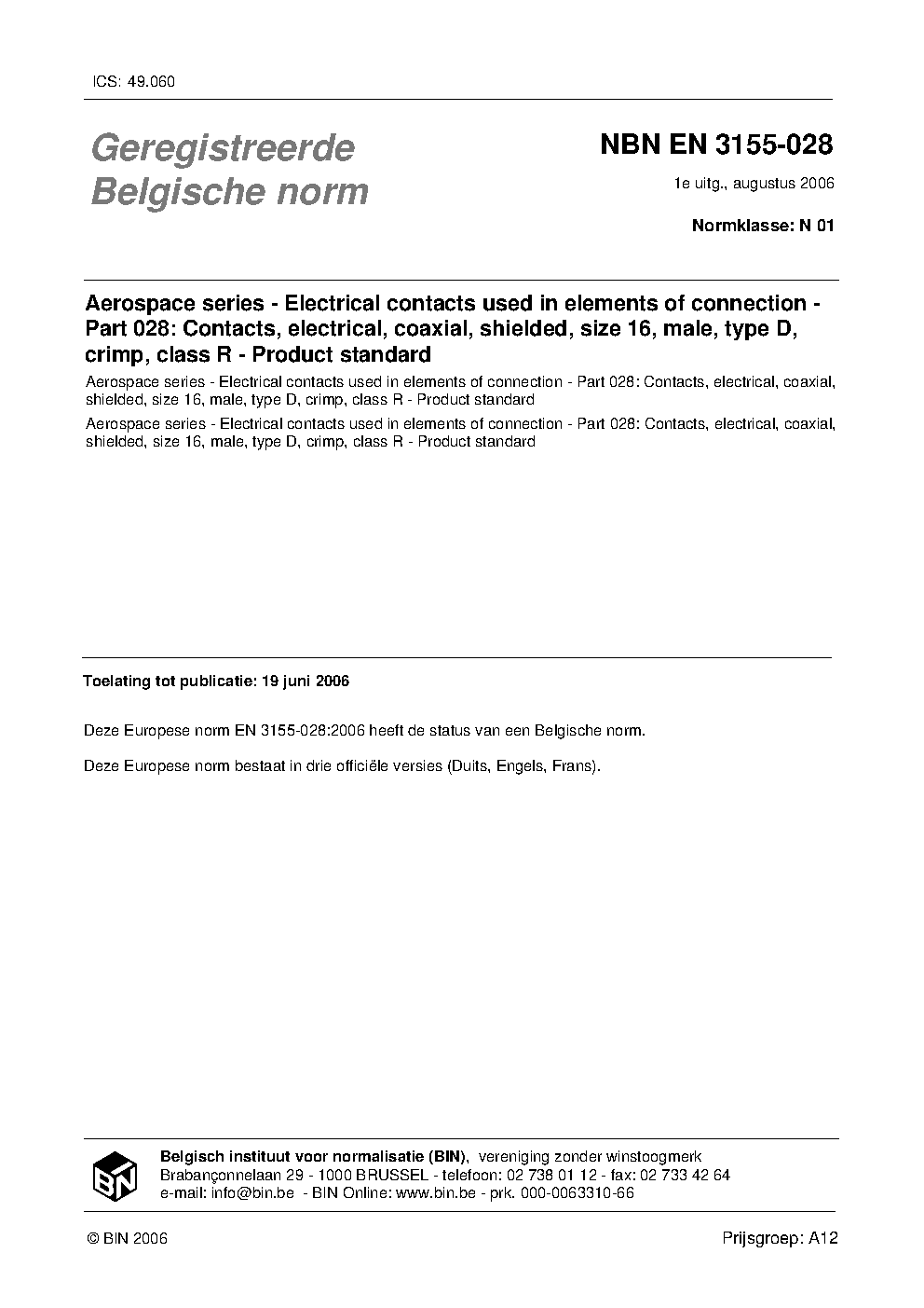 NBN EN 3155-028:2006
