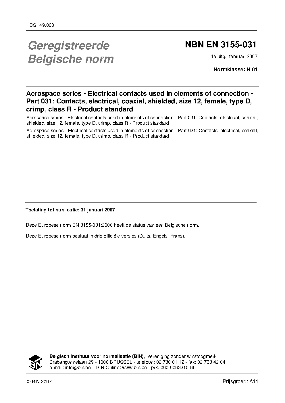 NBN EN 3155-031:2007