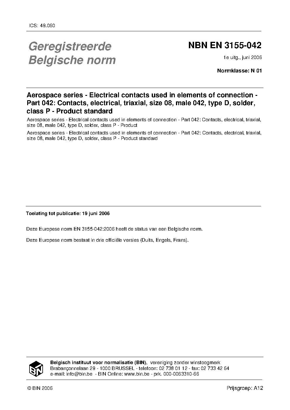 | Publisher | Bureau de Normalisation Belge (NBN) |