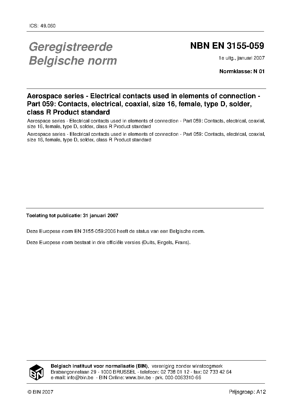 | Publisher | Bureau de Normalisation Belge (NBN) |