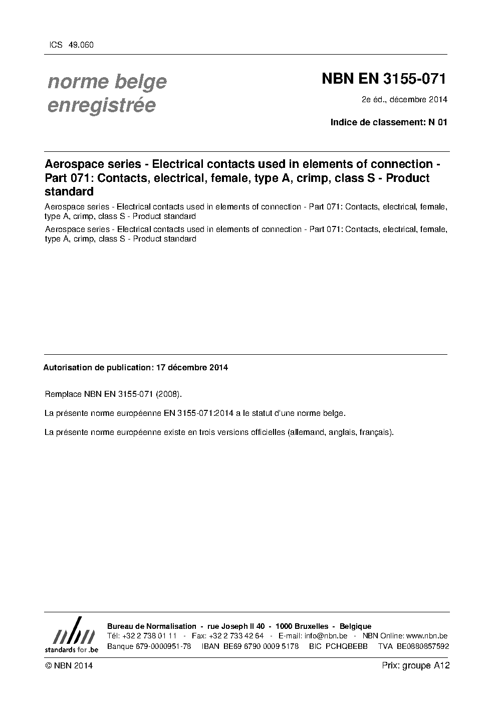 | Publisher | Bureau de Normalisation Belge (NBN) |