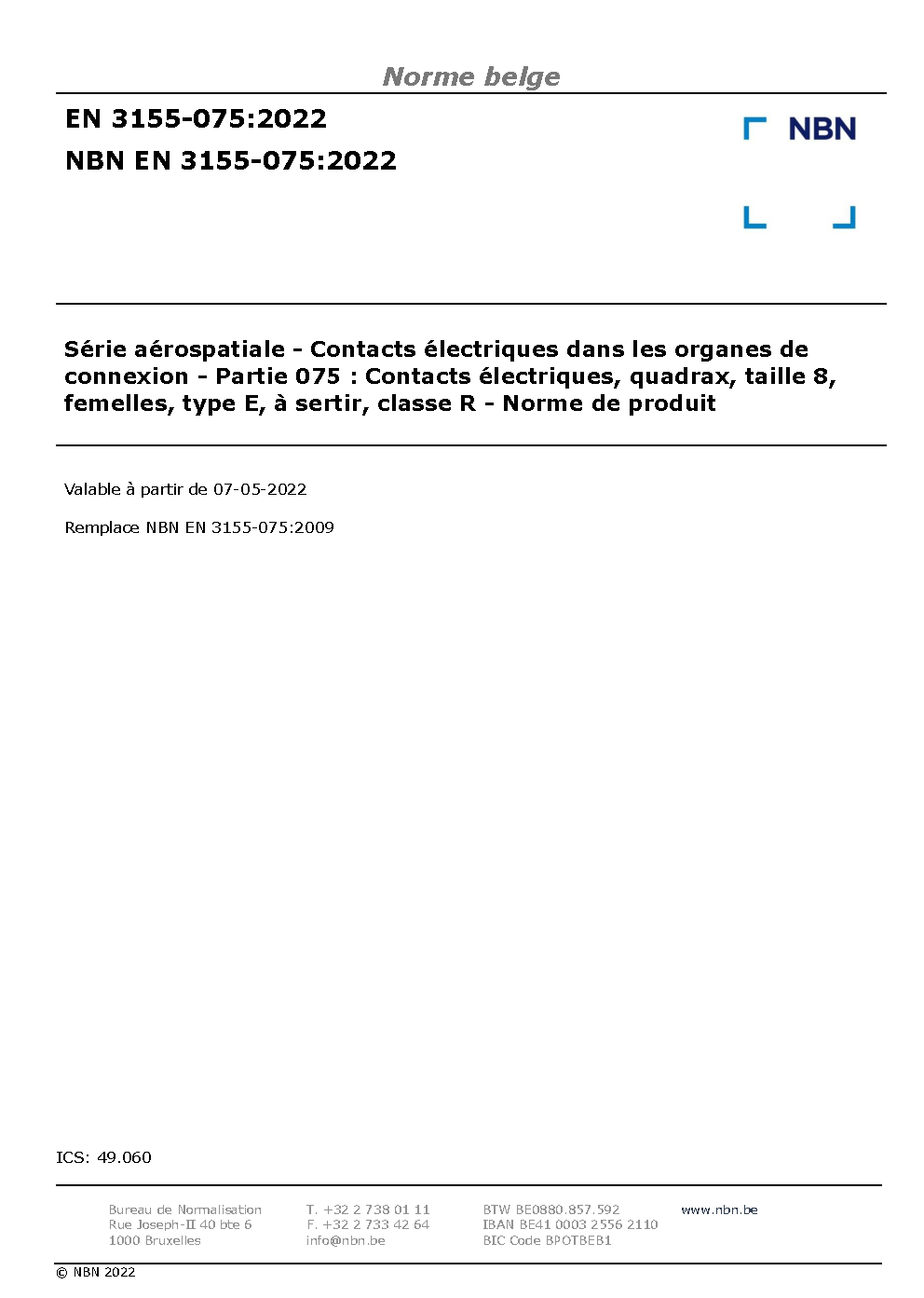 | Publisher | Bureau de Normalisation Belge (NBN) |