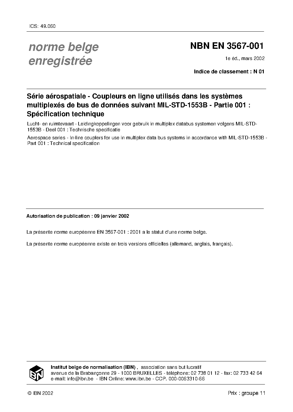 | Publisher | Bureau de Normalisation Belge (NBN) |