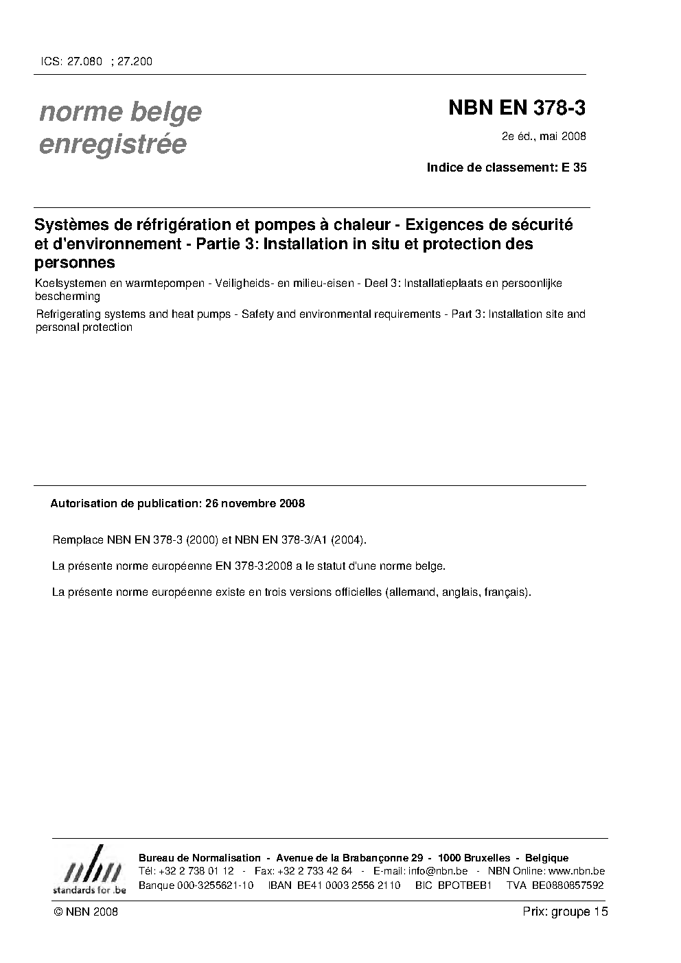 | Publisher | Bureau de Normalisation Belge (NBN) |