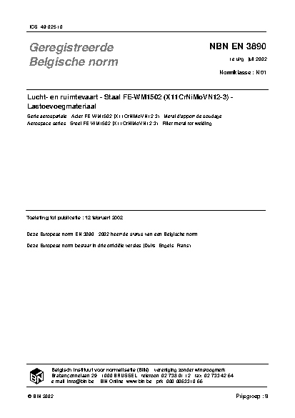 NBN EN 3890:2002