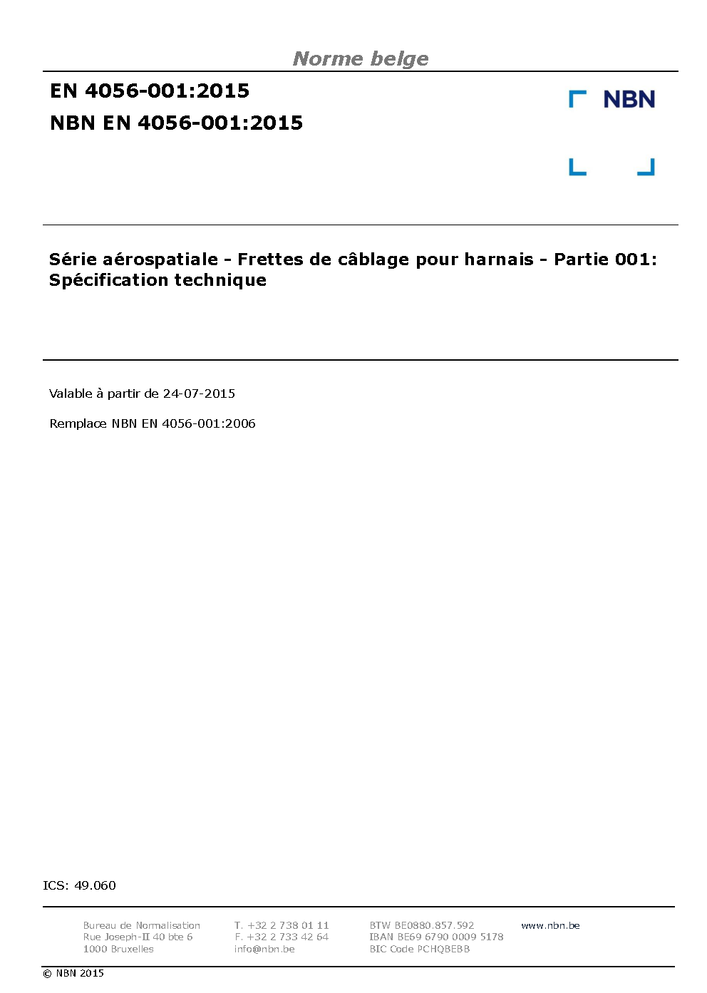 | Publisher | Bureau de Normalisation Belge (NBN) |