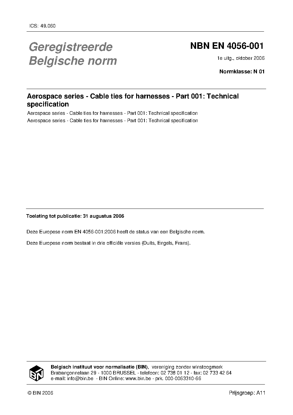 NBN EN 4056-001:2006
