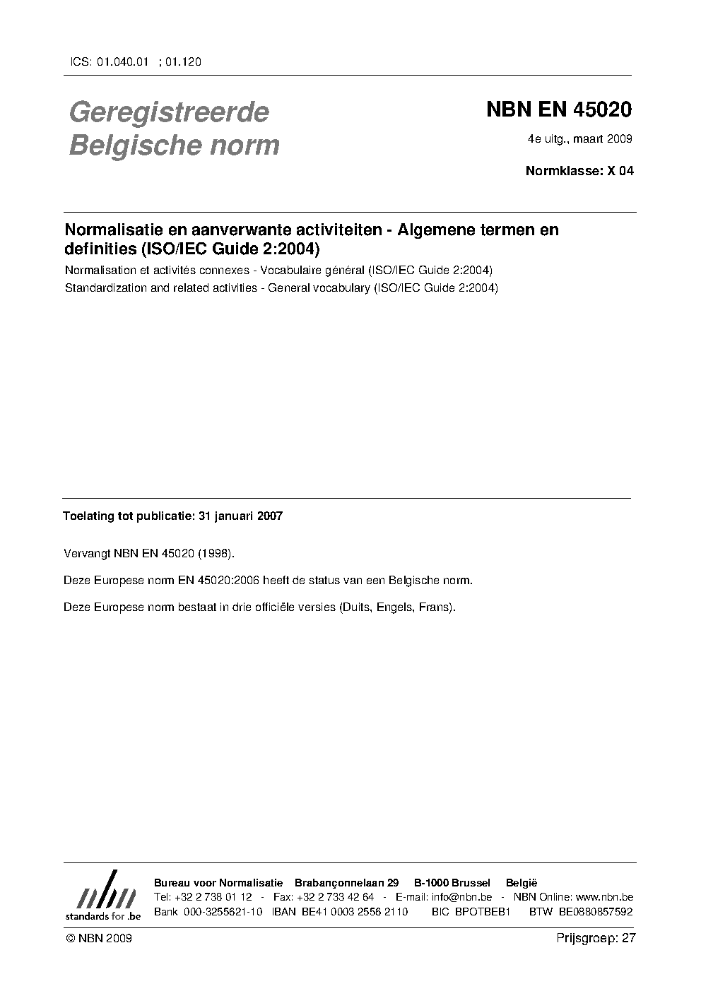 | Publisher | Bureau de Normalisation Belge (NBN) |