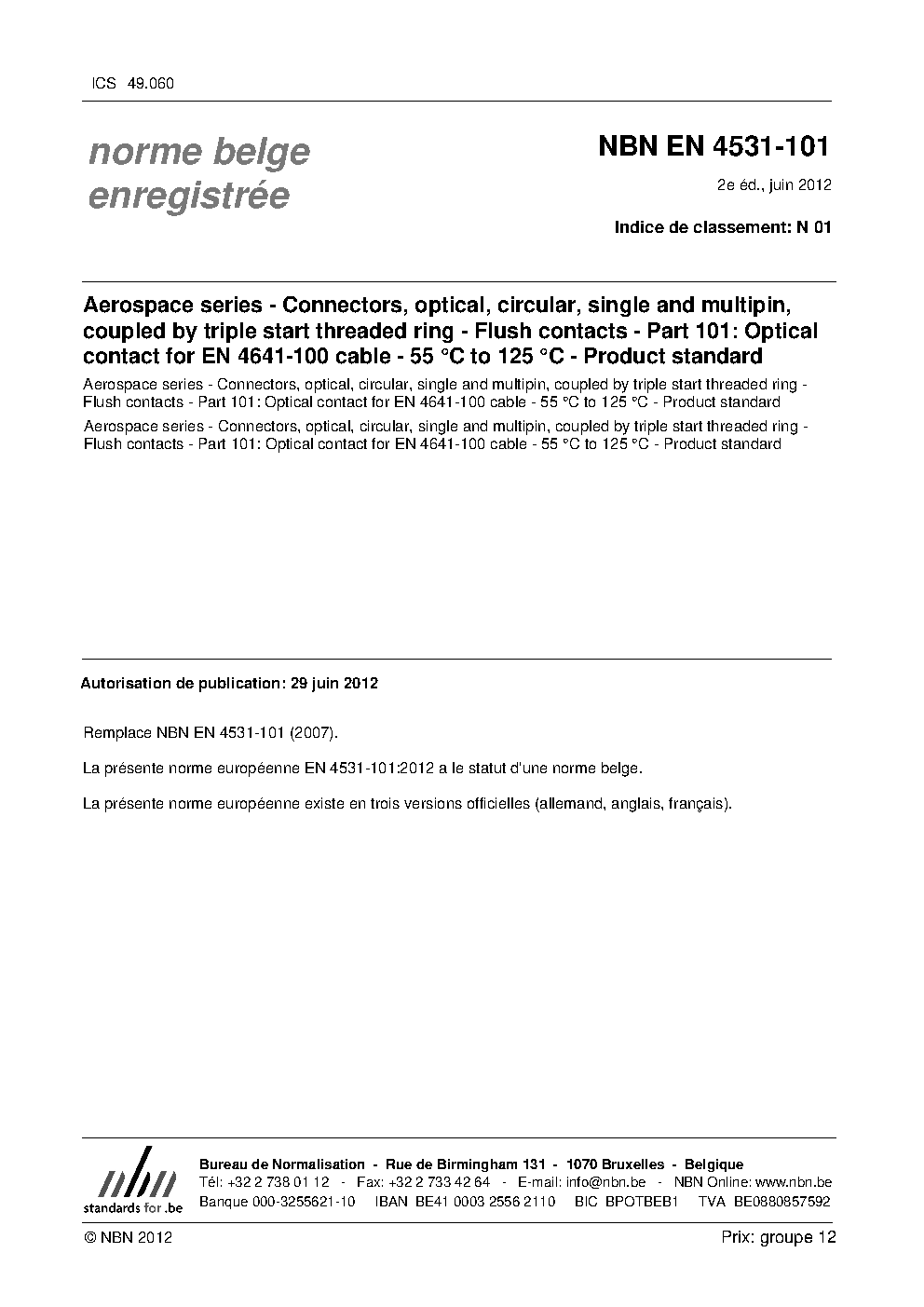 | Publisher | Bureau de Normalisation Belge (NBN) |