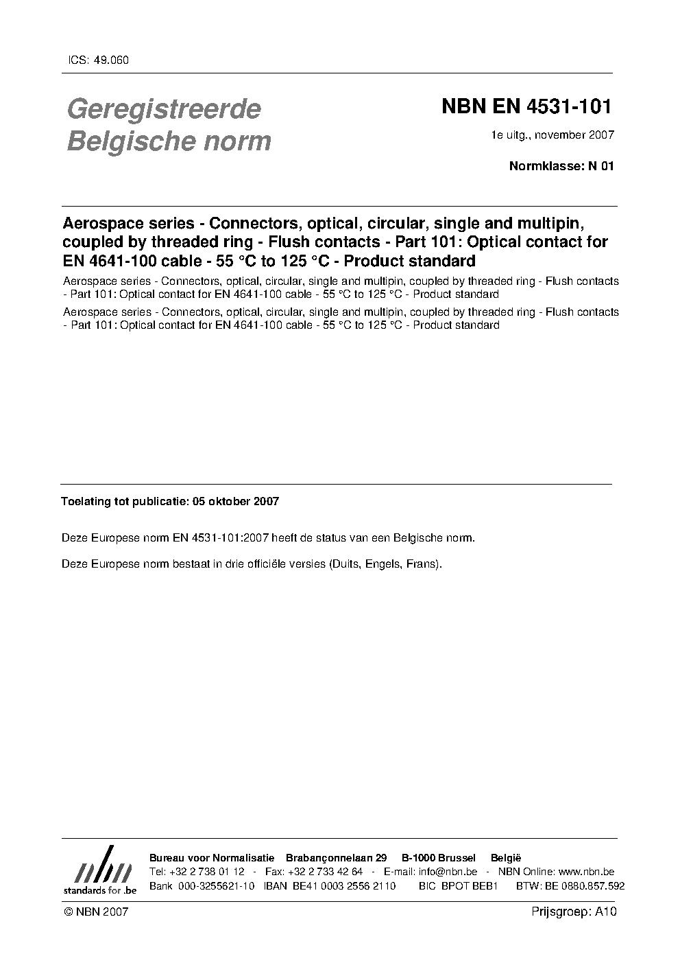 NBN EN 4531-101:2007