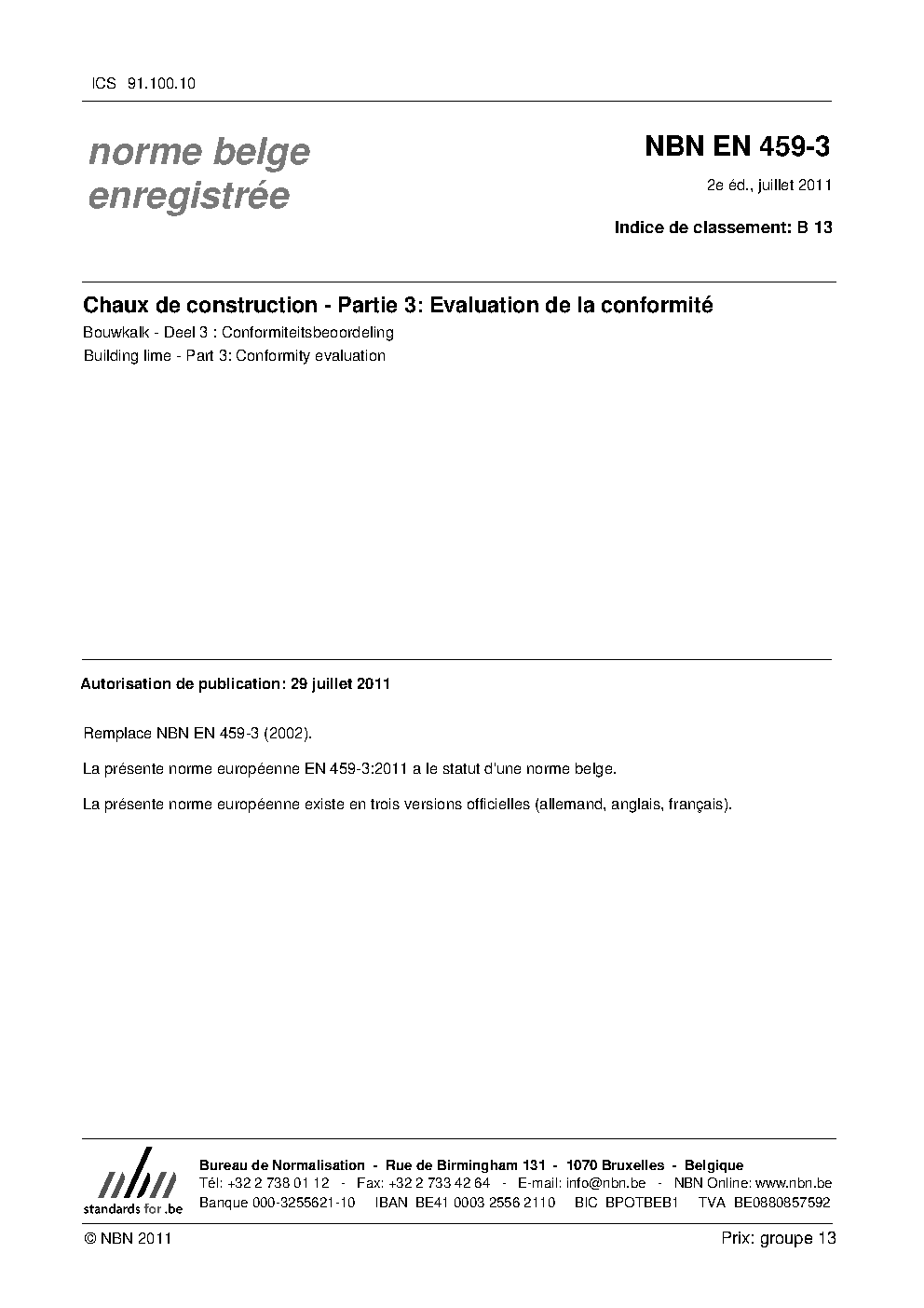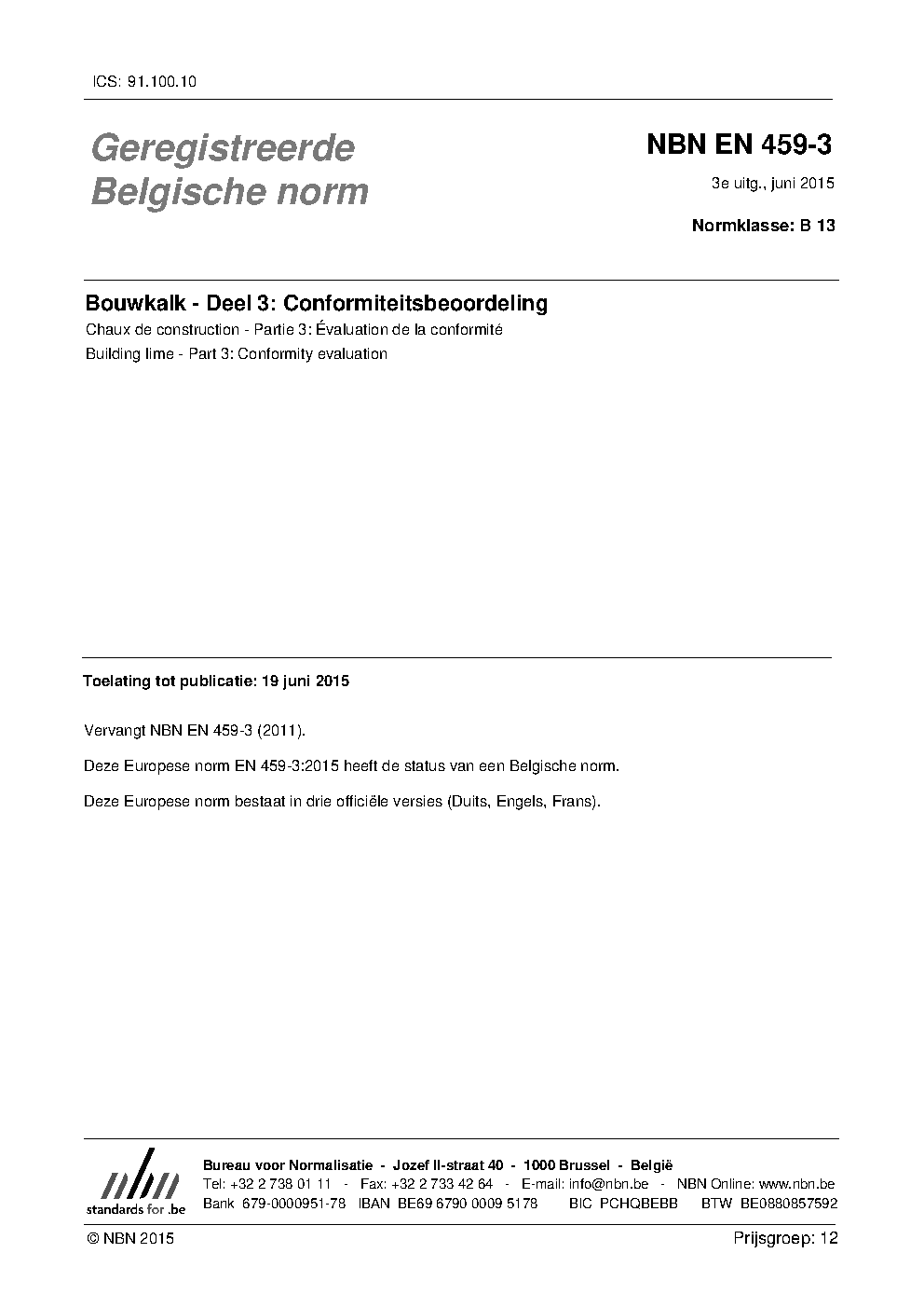 | Publisher | Bureau de Normalisation Belge (NBN) |
