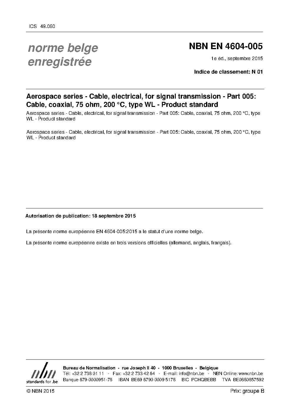 | Publisher | Bureau de Normalisation Belge (NBN) |