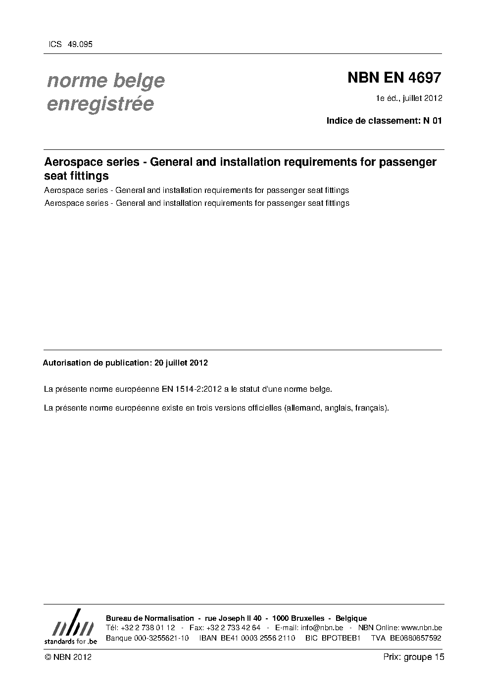 | Publisher | Bureau de Normalisation Belge (NBN) |