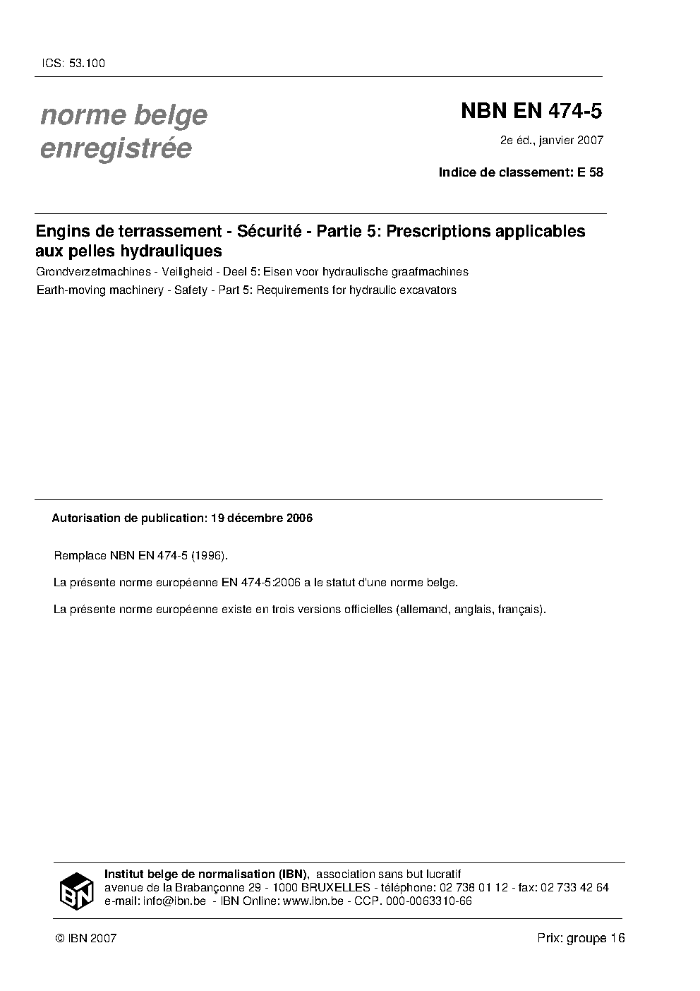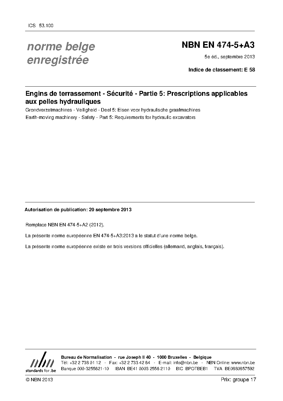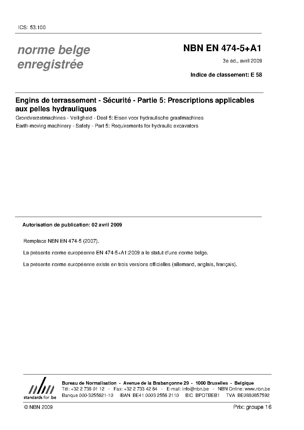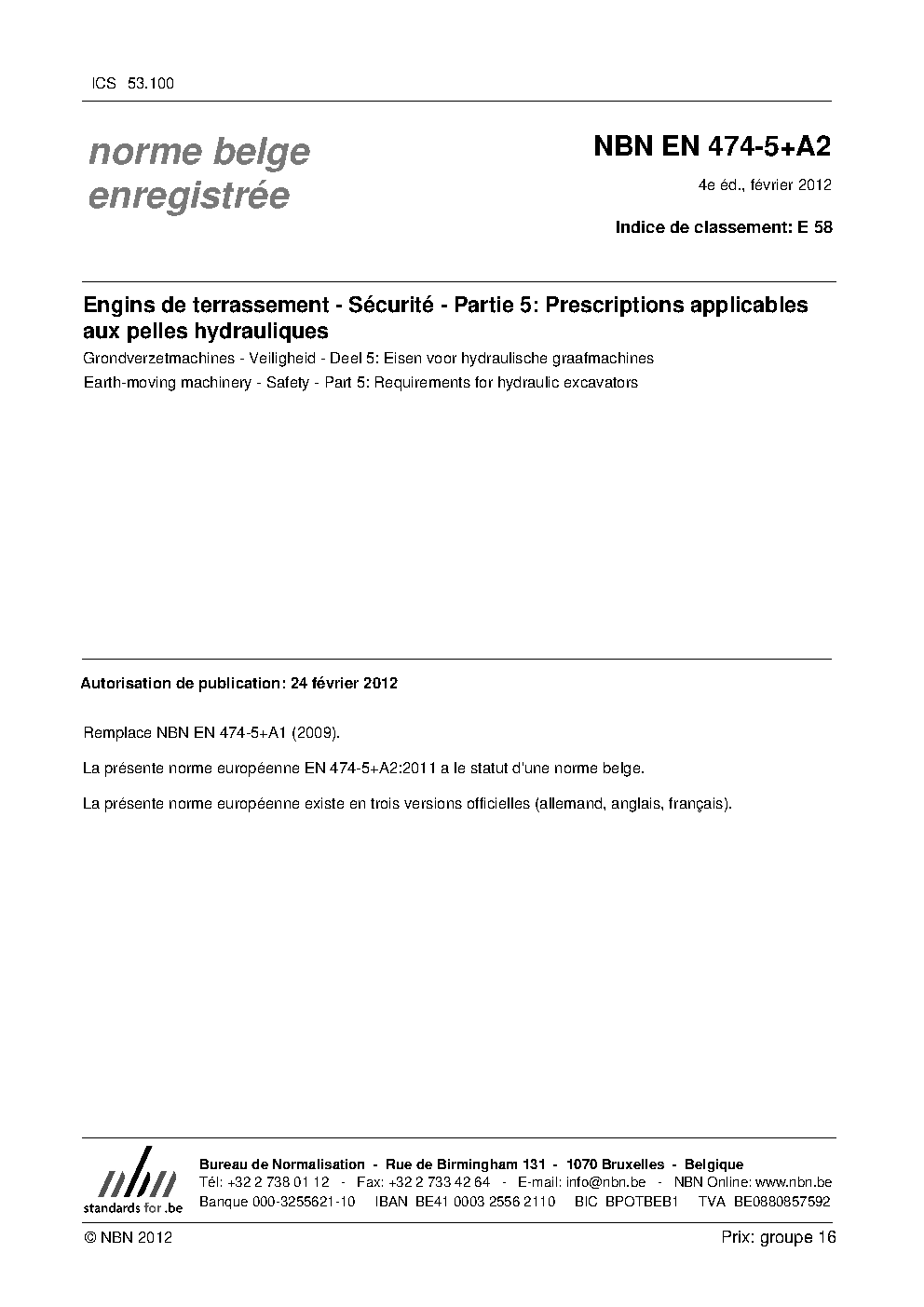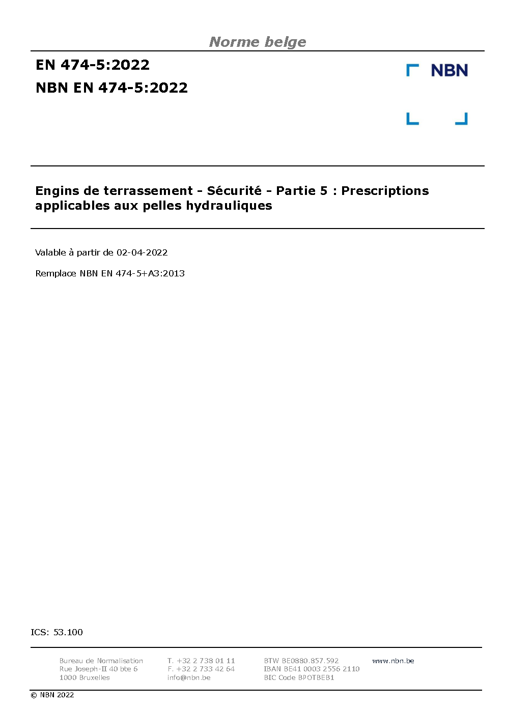| Publisher | Bureau de Normalisation Belge (NBN) |