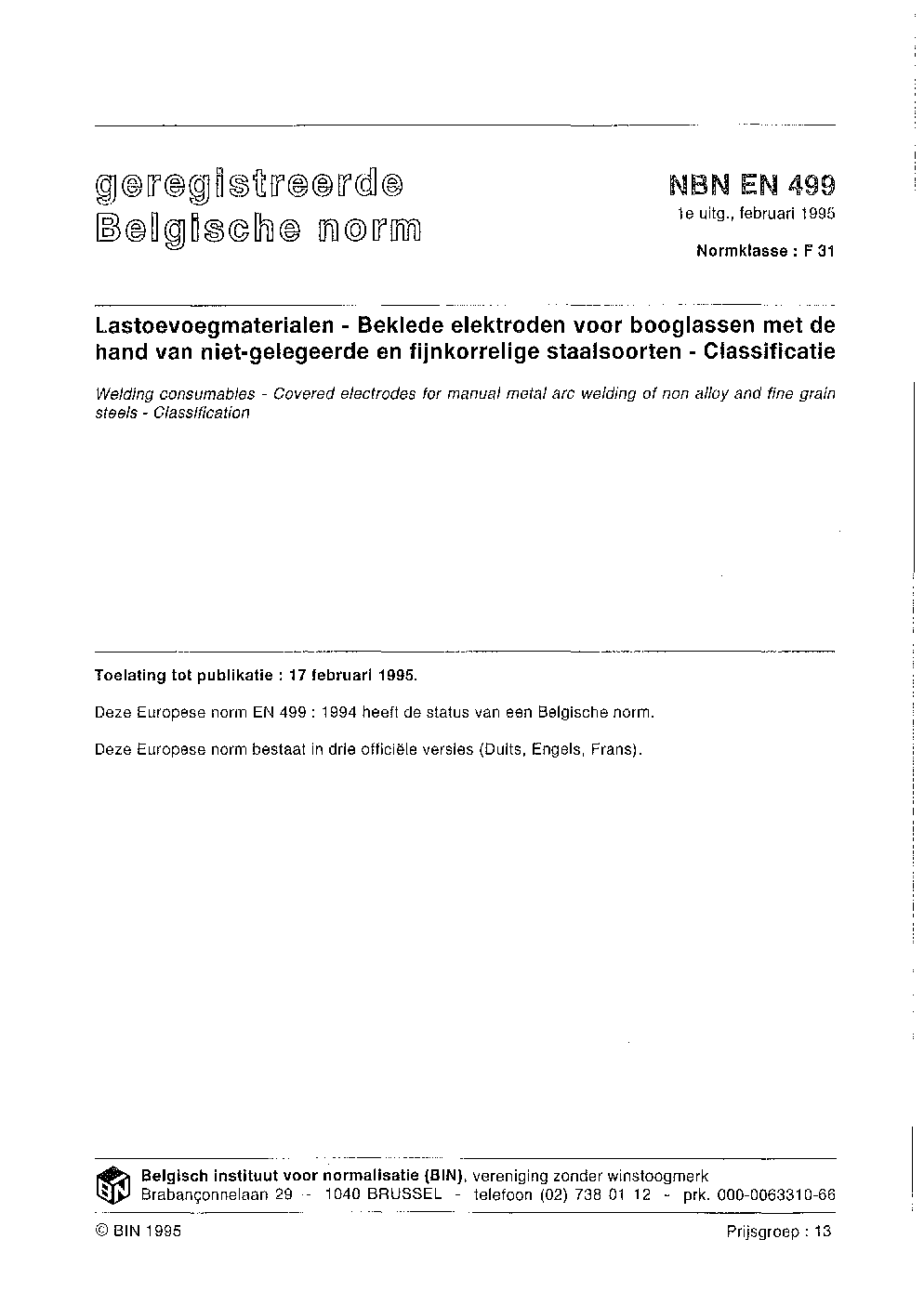 NBN EN 499:1995