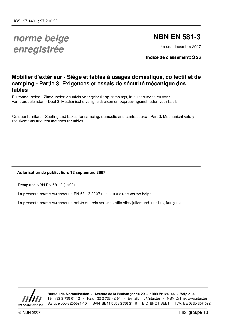 | Publisher | Bureau de Normalisation Belge (NBN) |
