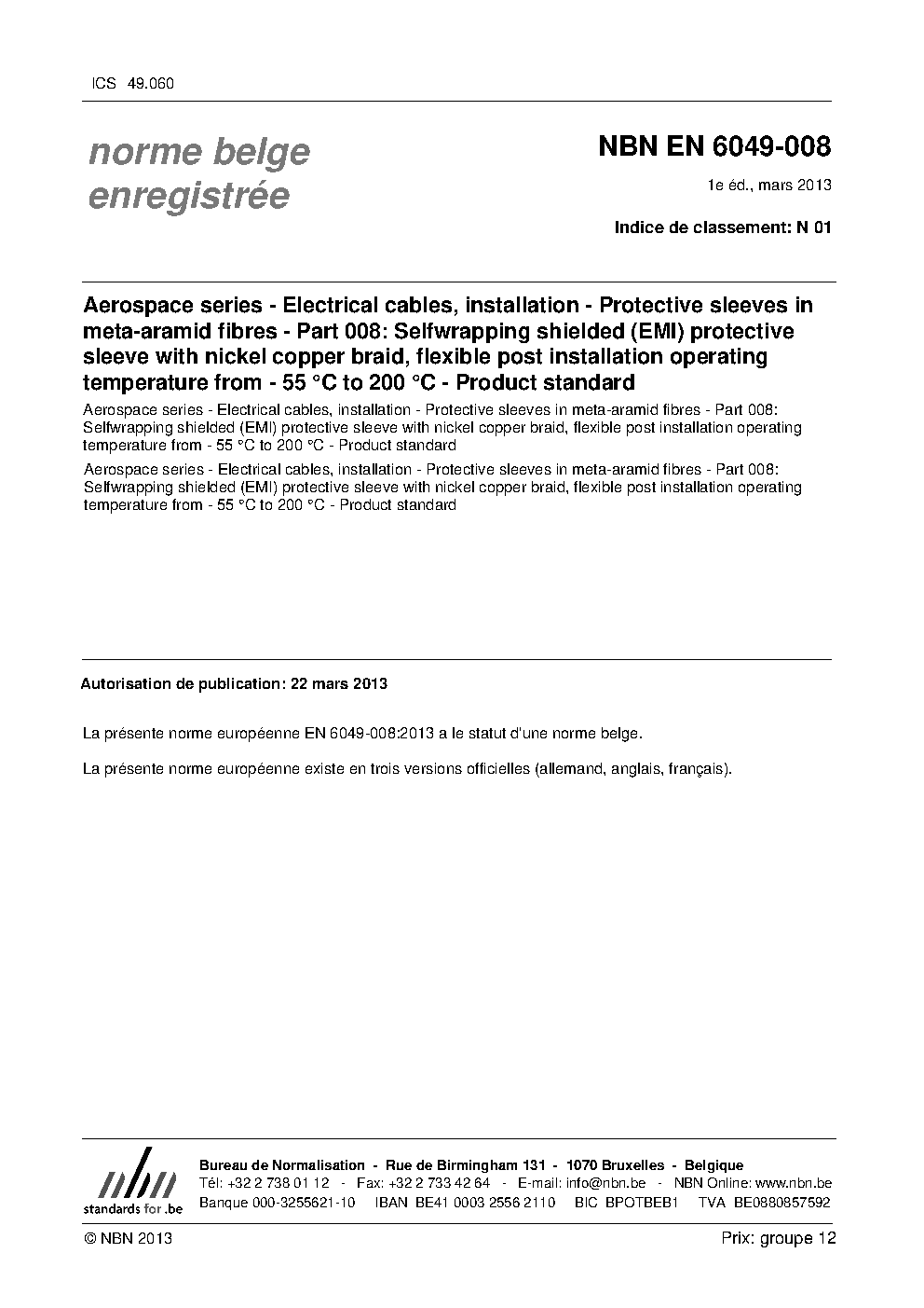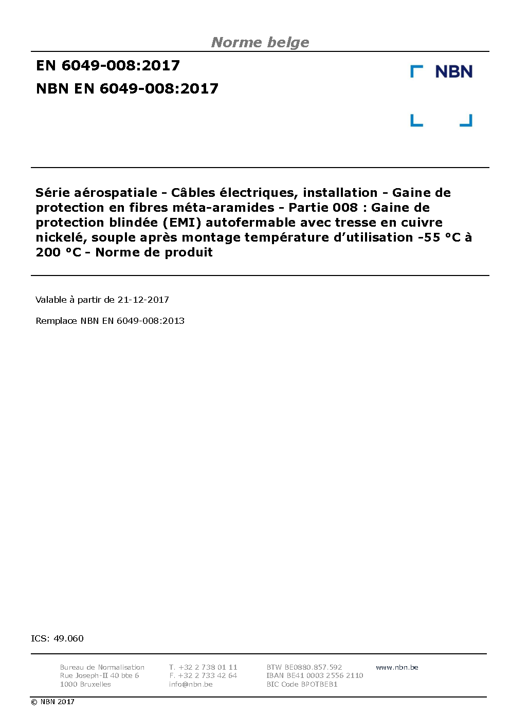 | Publisher | Bureau de Normalisation Belge (NBN) |