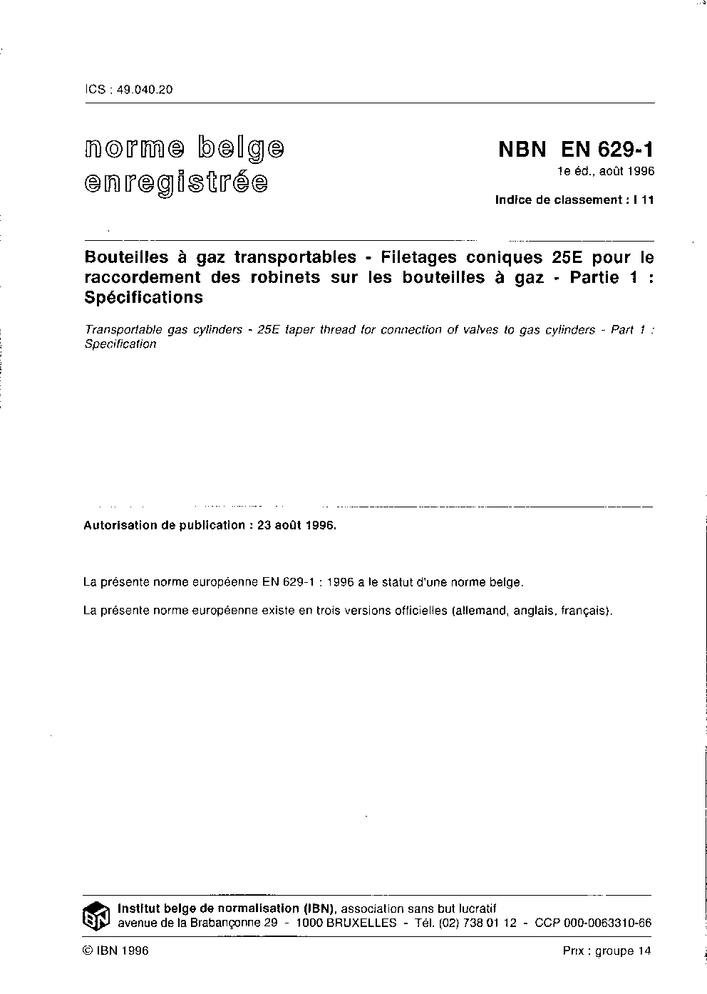 | Publisher | Bureau de Normalisation Belge (NBN) |