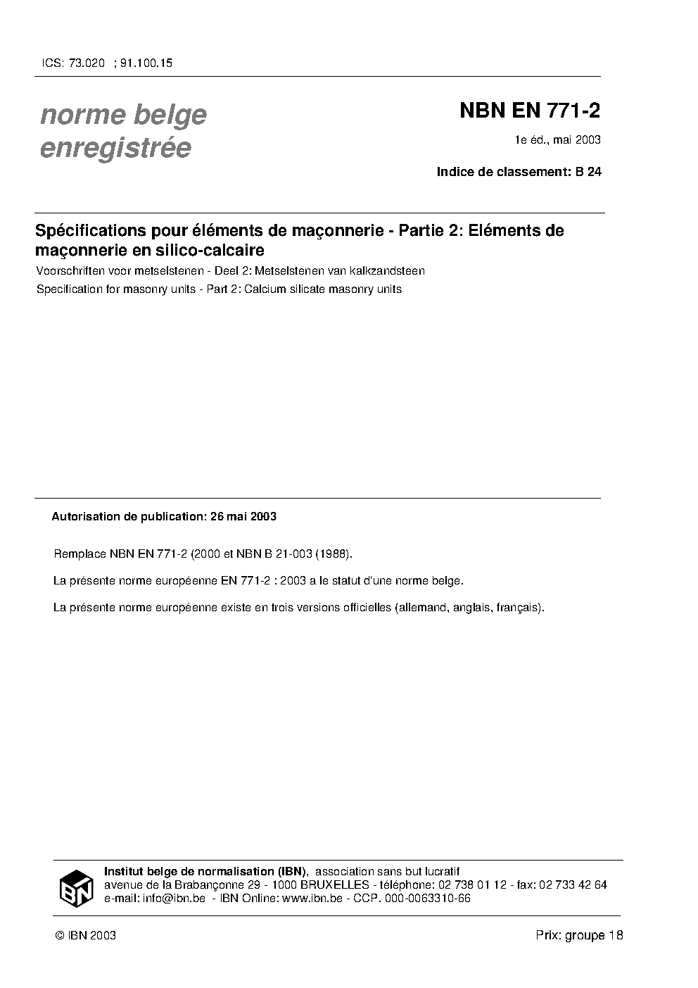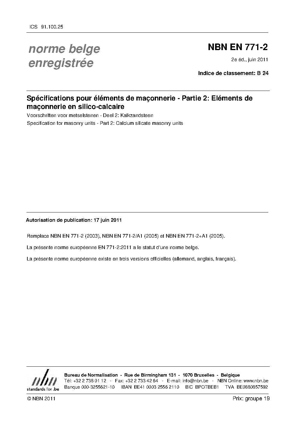 | Publisher | Bureau de Normalisation Belge (NBN) |