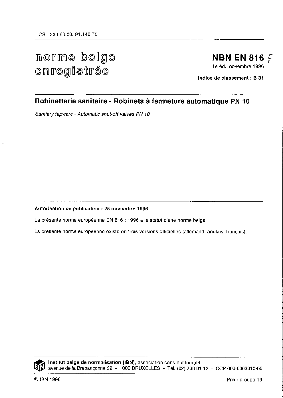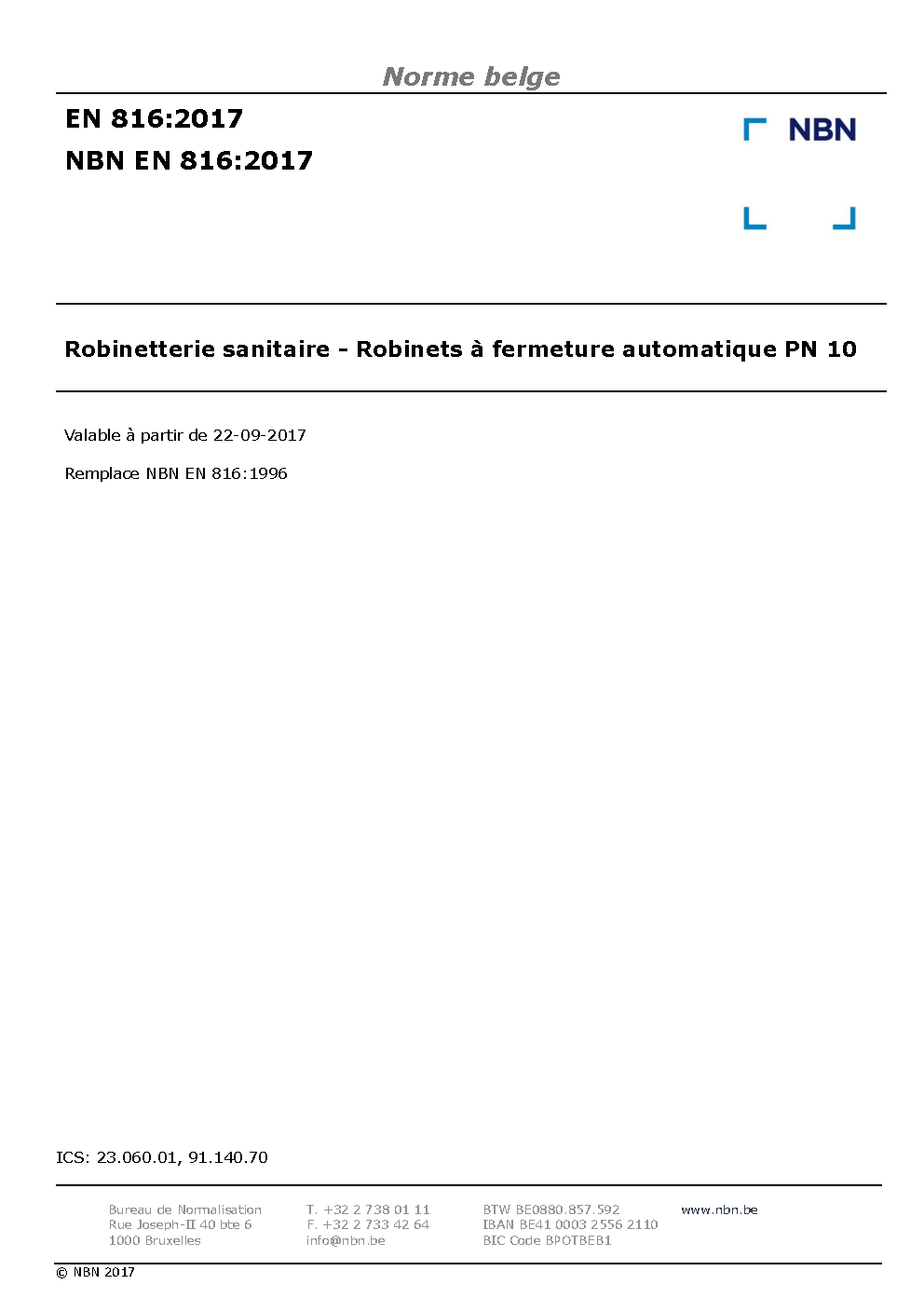 | Publisher | Bureau de Normalisation Belge (NBN) |