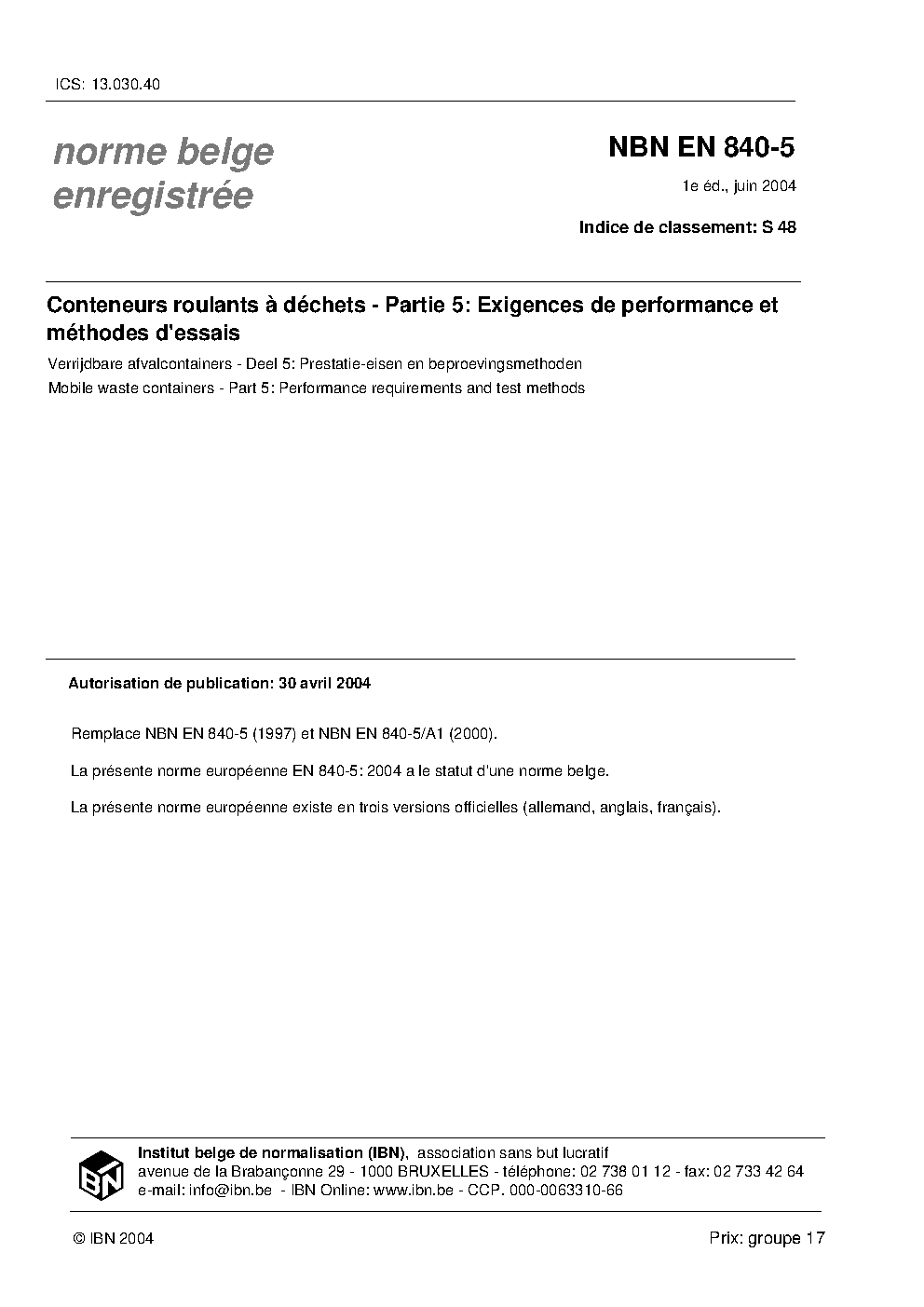 | Publisher | Bureau de Normalisation Belge (NBN) |
