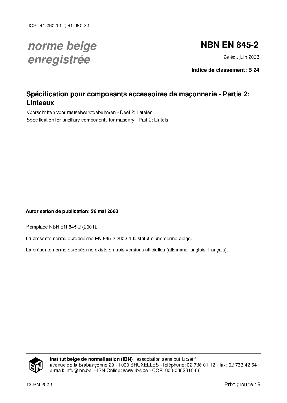 | Publisher | Bureau de Normalisation Belge (NBN) |