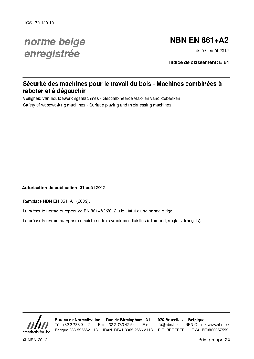 | Publisher | Bureau de Normalisation Belge (NBN) |