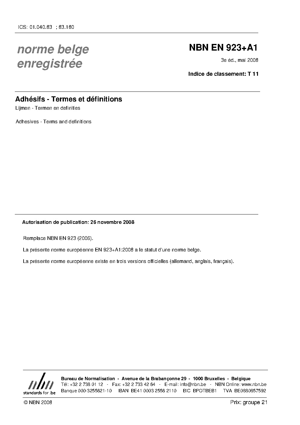 | Publisher | Bureau de Normalisation Belge (NBN) |