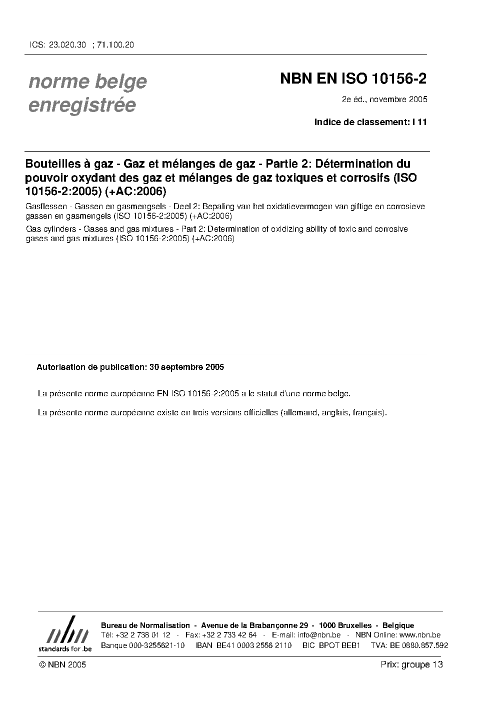 | Publisher | Bureau de Normalisation Belge (NBN) |