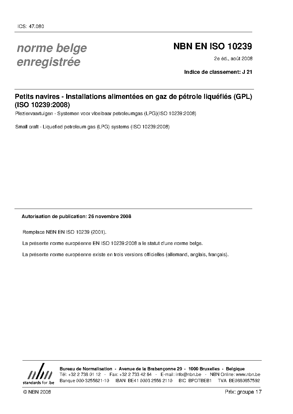 | Publisher | Bureau de Normalisation Belge (NBN) |