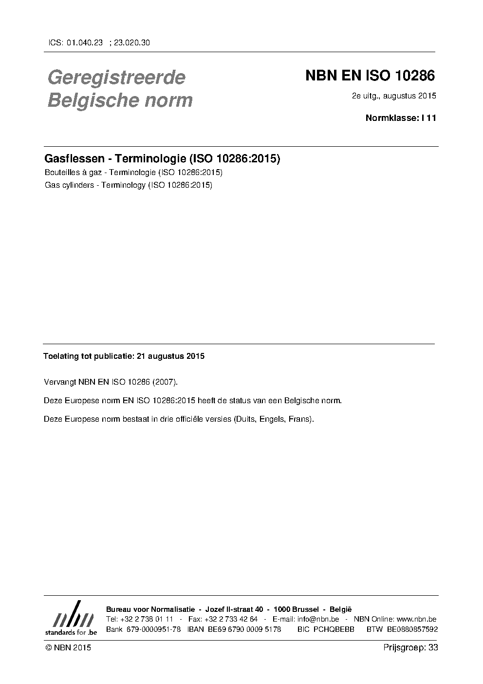 | Publisher | Bureau de Normalisation Belge (NBN) |