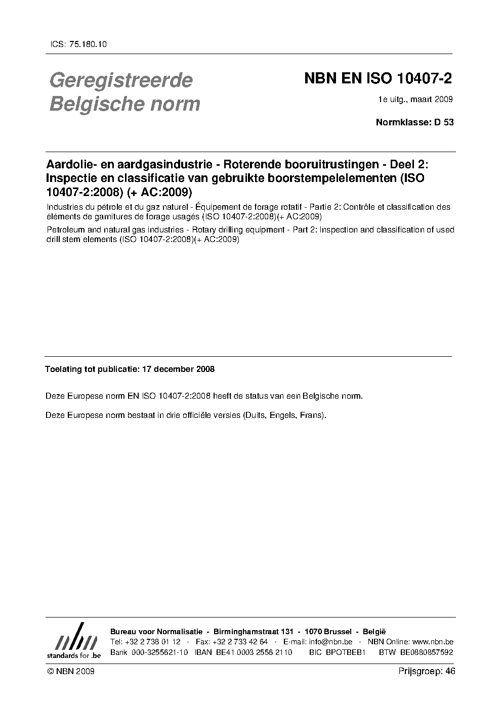 | Publisher | Bureau de Normalisation Belge (NBN) |