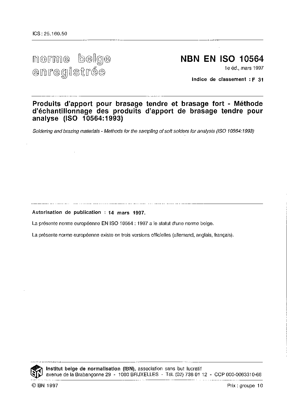 | Publisher | Bureau de Normalisation Belge (NBN) |
