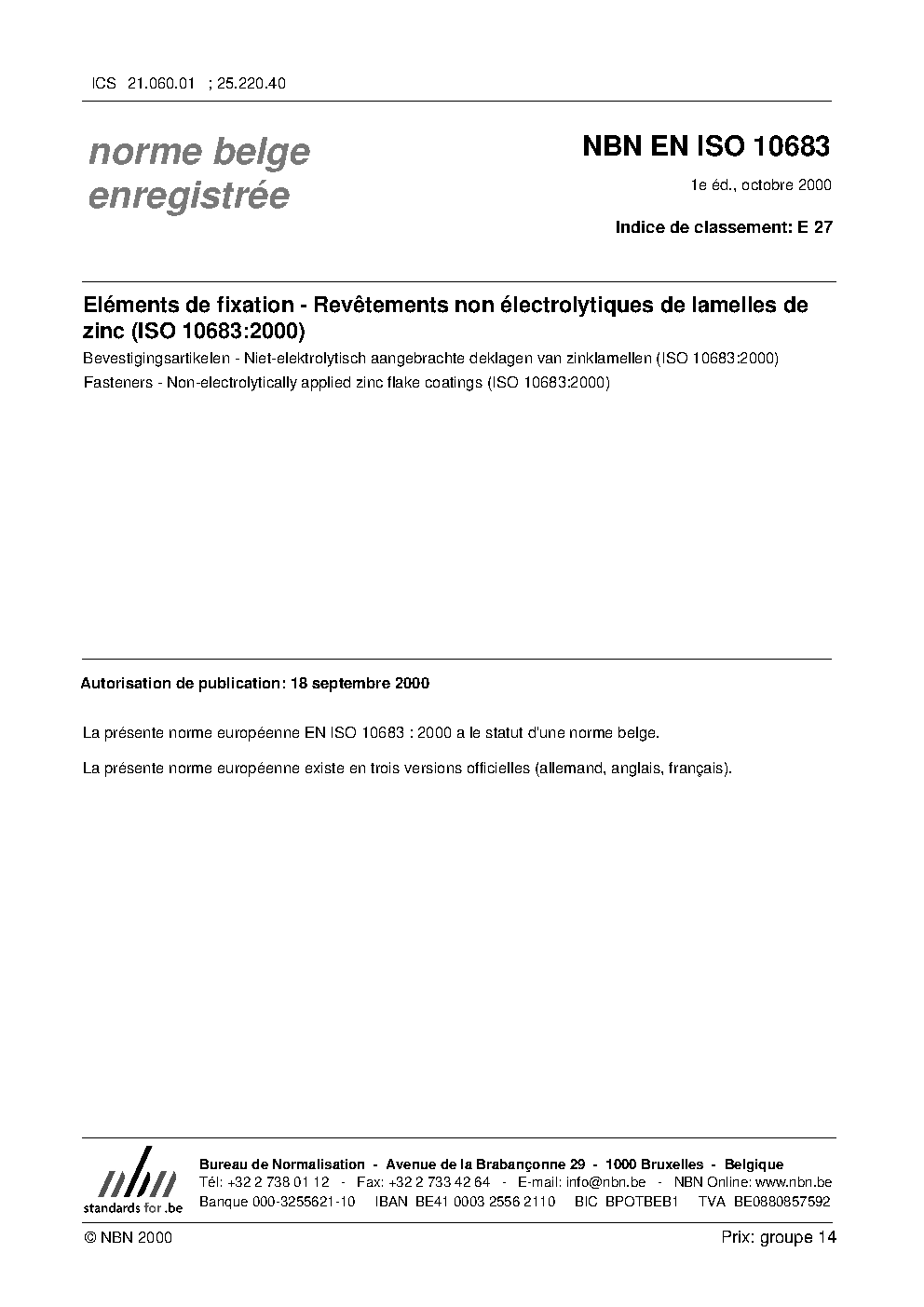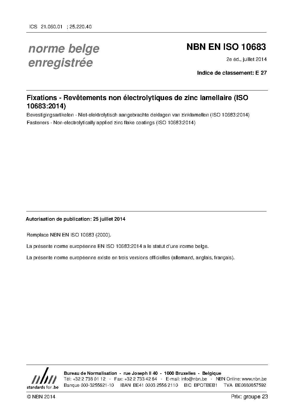 | Publisher | Bureau de Normalisation Belge (NBN) |