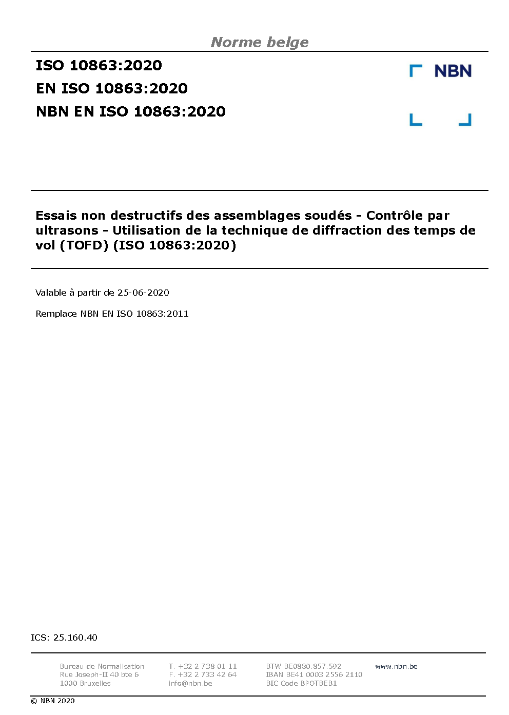 Non-destructive testing of welds - Ultrasonic testing - Use of time-of-flight diffraction technique (TOFD) (ISO 10863:2020)