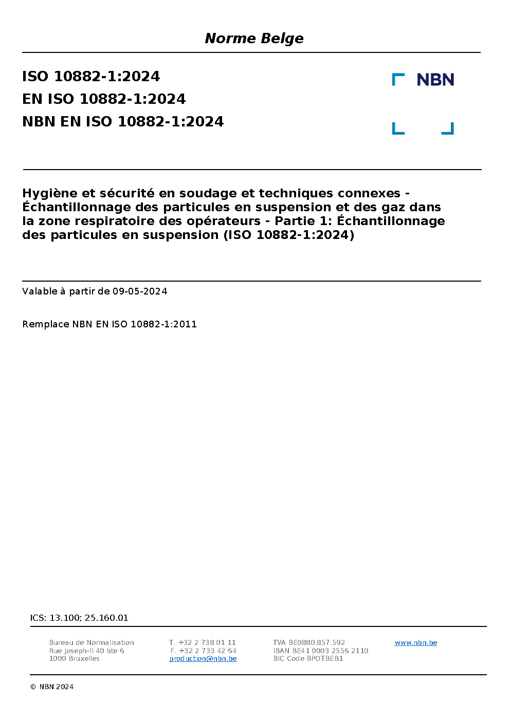 Health and safety in welding and allied processes - Sampling of airborne particles and gases in the operator's breathing zone - Part 1: Sampling of airborne particles (ISO 10882-1:2024)
