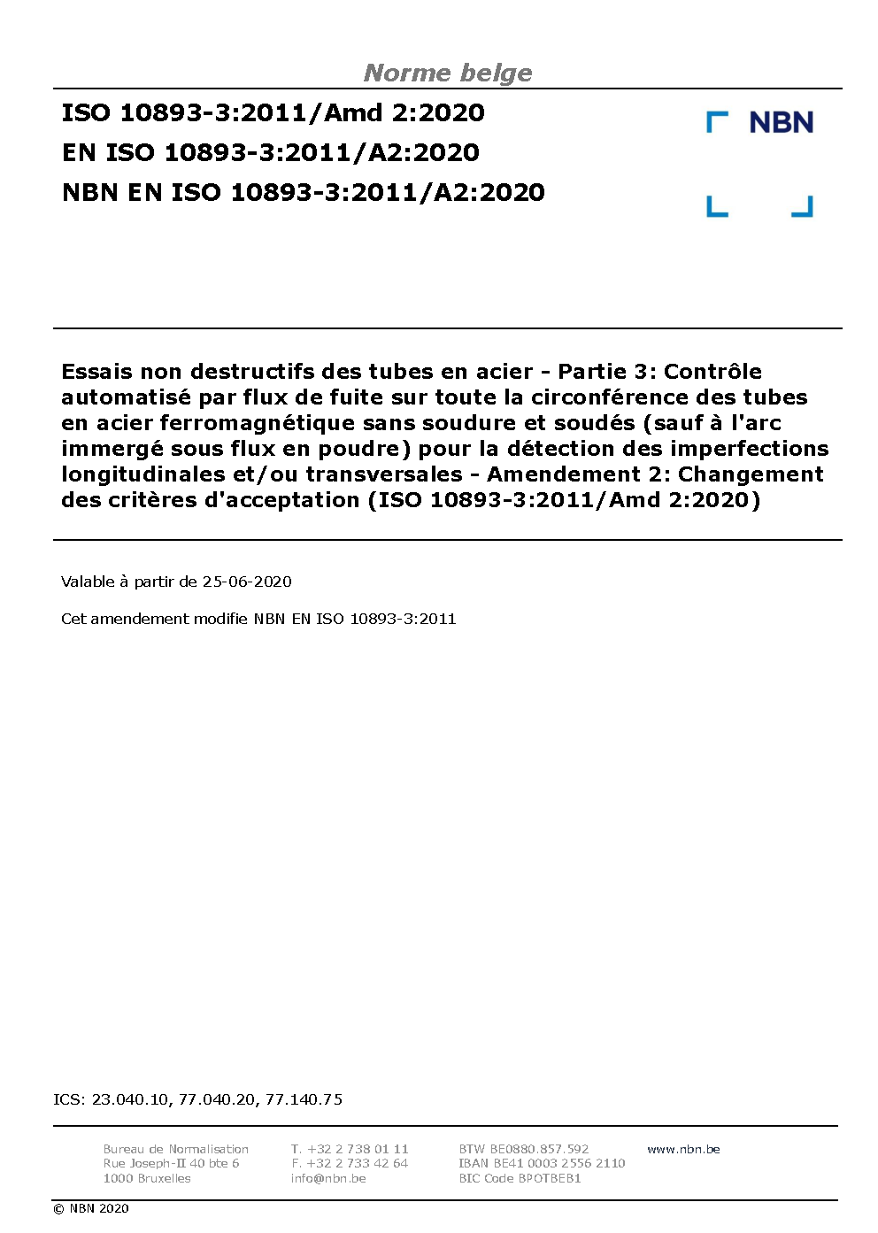NBN EN ISO 10893-3:2011/A2:2020