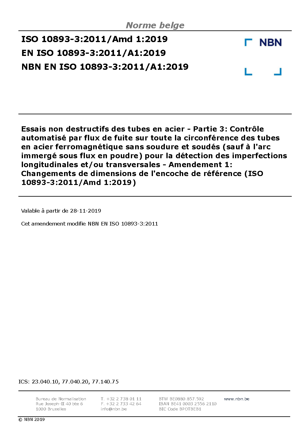 | Publisher | Bureau de Normalisation Belge (NBN) |