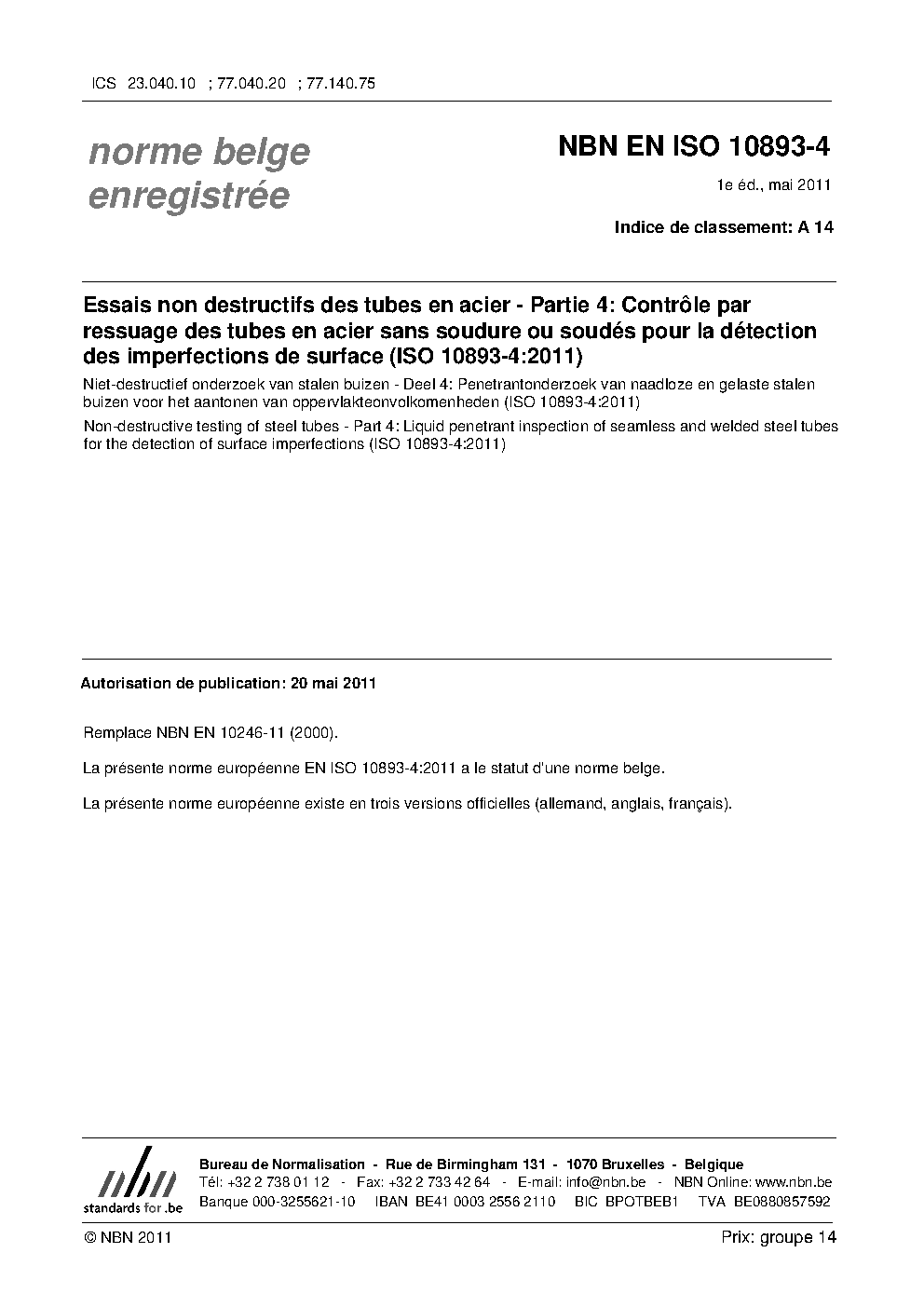 | Publisher | Bureau de Normalisation Belge (NBN) |