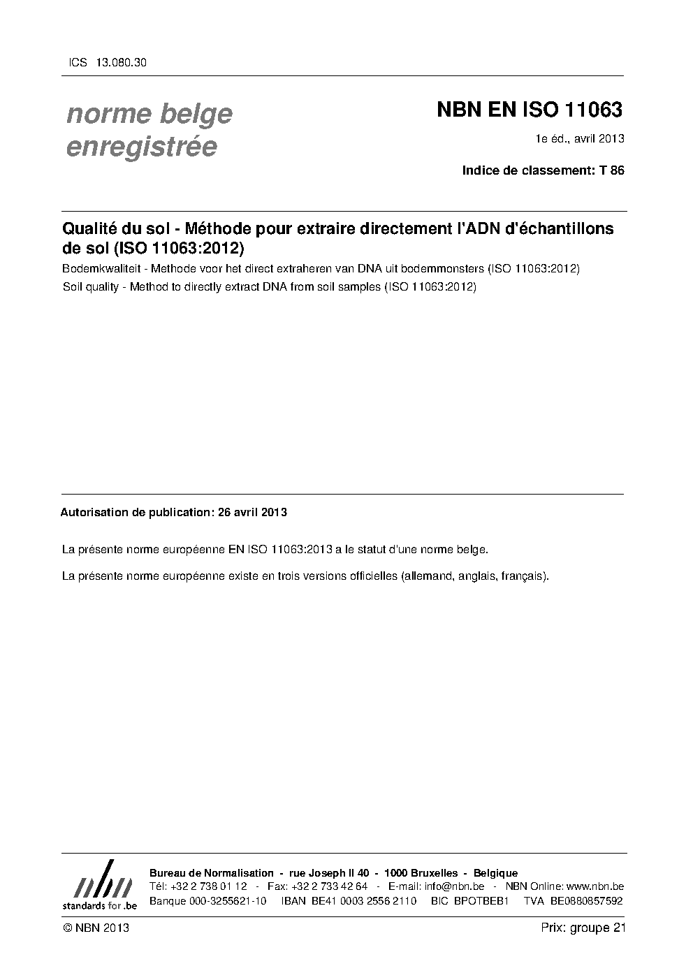 | Publisher | Bureau de Normalisation Belge (NBN) |