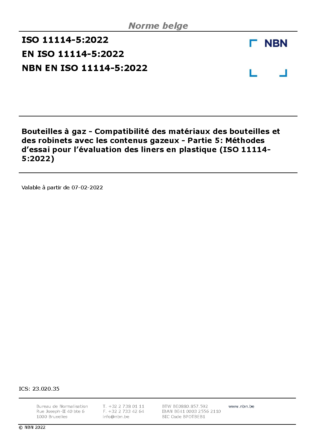 | Publisher | Bureau de Normalisation Belge (NBN) |