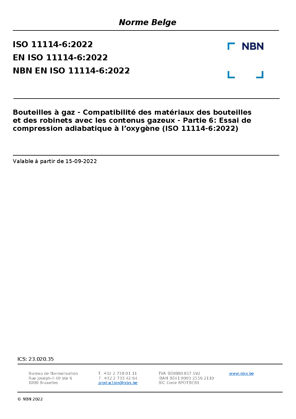 Gas cylinders - Compatibility of cylinder and valve materials with gas contents - Part 6: Oxygen pressure surge testing (ISO 11114-6:2022)