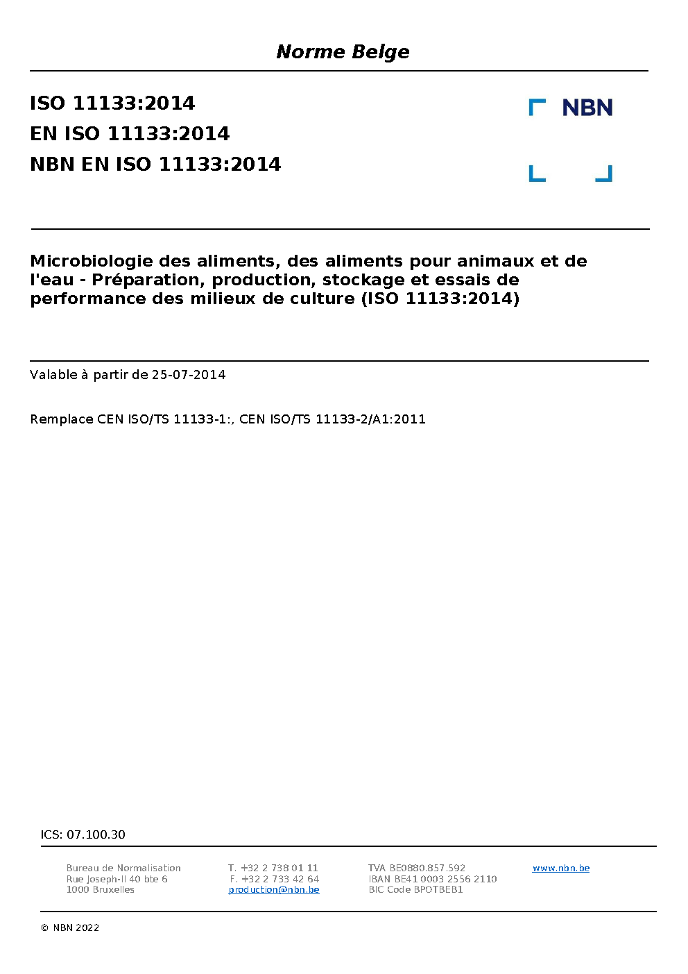 | Publisher | Bureau de Normalisation Belge (NBN) |
