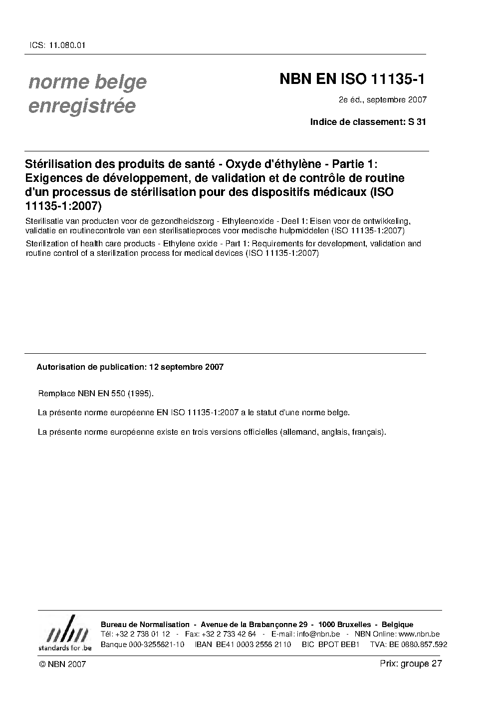 NBN EN ISO 11135-1:2007