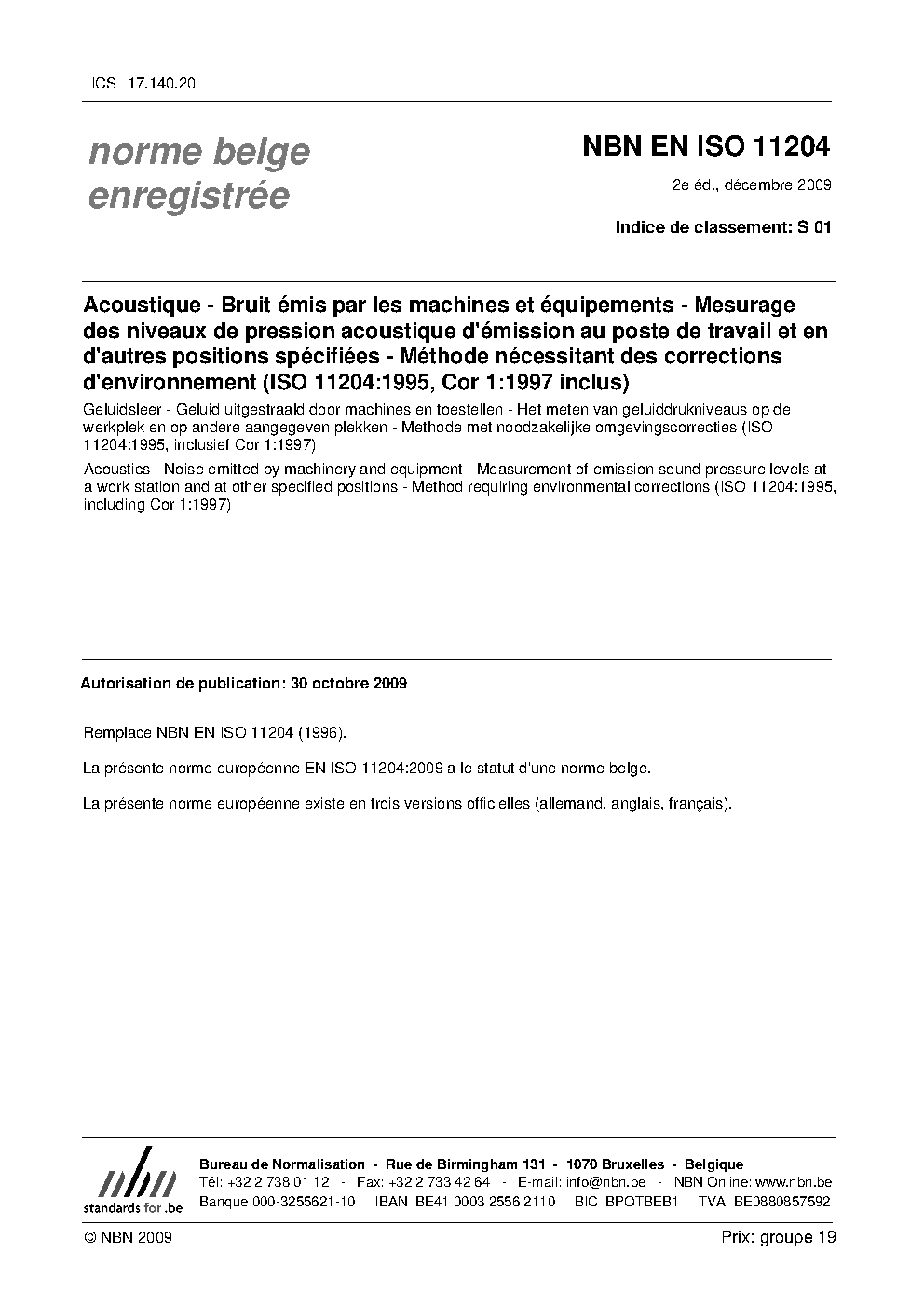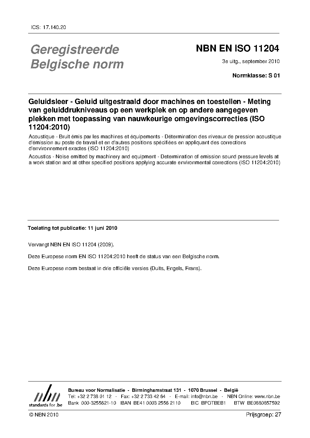 | Publisher | Bureau de Normalisation Belge (NBN) |
